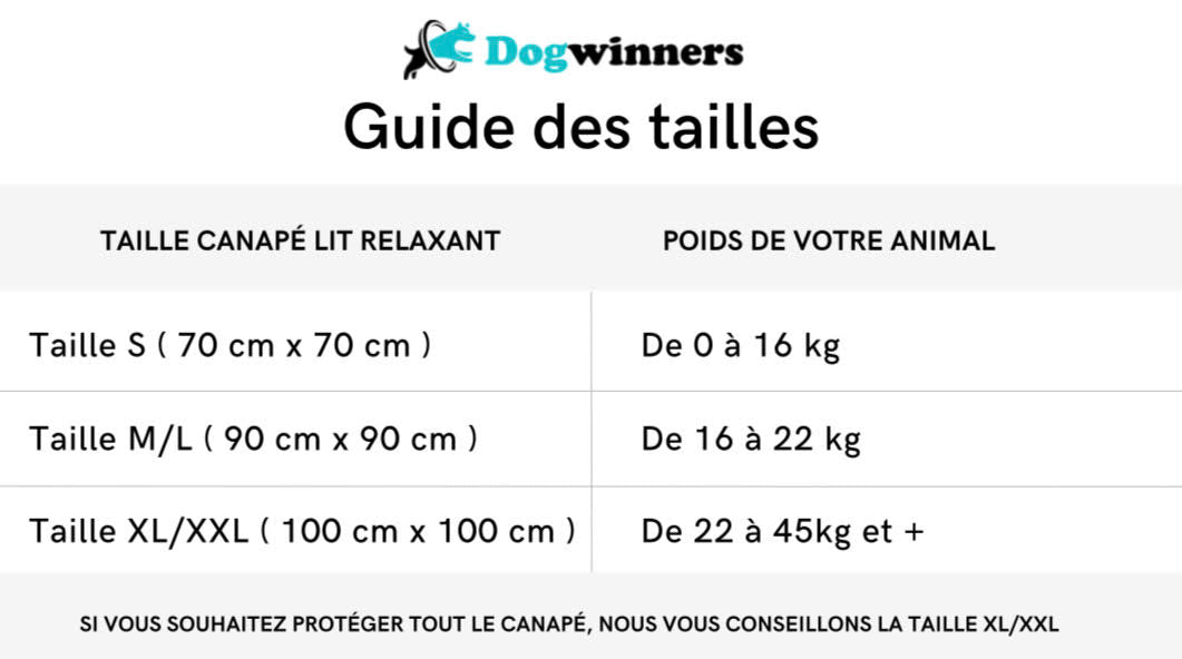 * Nous vous recommandons de choisir une taille au-dessus pour garantir un confort optimal à votre animal.